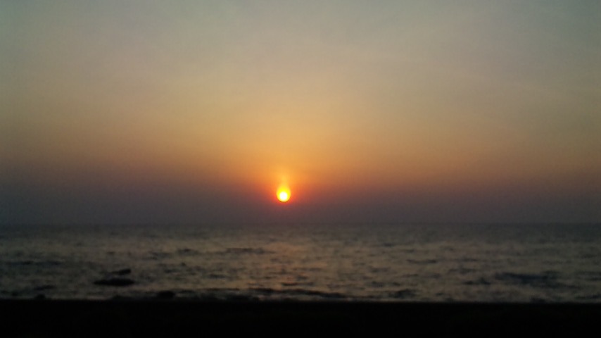今日はちょっと海の周辺に雲がありますが、その雲がうまく、太陽の光をちらしています。